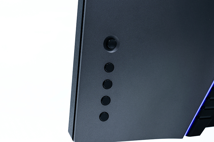 モニターの設定は、画面下にあるやわらかいボタンを上下左右に動かして操作。画面設定の種類が豊富で、明るさやコントラストはもちろん、ゲームに合わせてさまざまなモードや数値の調整ができることには驚いた。