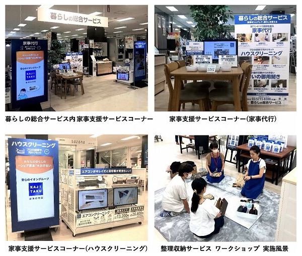 これまでも同社は、イオン店舗内にてハウスクリーニング、保管付き衣類・布団クリーニングに関するサービス(商品)を取り扱っていたが、「家事代行(掃除・料理・整理整頓)サービスの販売」を加えた「家事支援サービスコーナー」の開設は、今回が初となる。
