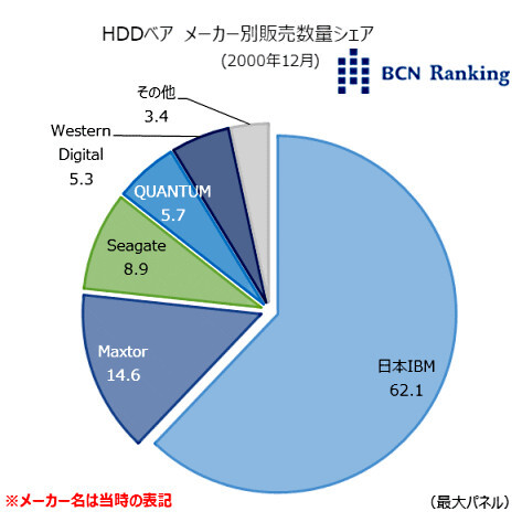 <懐かしのデジタル家電> 2000年12月のHDDベア、IBMが6割占め2位以下突き放す