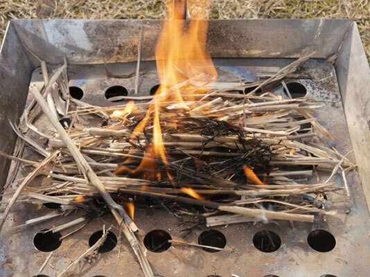 失敗しないためには「小さな薪から大きな薪に火を移す」ことが重要。そのほか、枝や薪を使う際は、できるだけ乾燥しているものを選ぶようにしよう。水分の多い薪は火が着きづらく、多くの煙が発生してしまう。