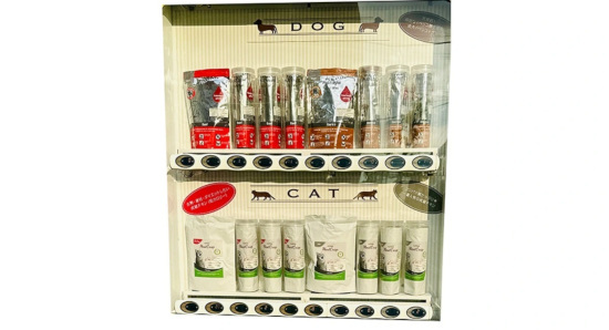プラチナム専用「自動販売機」は、ペットショップ、ドッグラン、ペット宿泊可能施設、ペットショップ、ペットサロン、動物病院、商業施設などとのコラボレーションも含め設置場所のニーズに合わせてドッグフードとキャットフードをさまざまな組み合わせで展開していく。