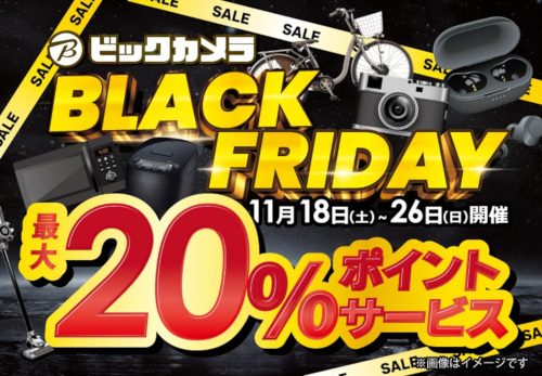 ビックカメラは11月18~26日の9日間、特別価格の台数限定商品や最大20%のポイントが還元される商品などを多く用意した「ビックカメラのブラックフライデー」を開催する。昨年、ビックカメラ・ドットコムでの実施で好評を得たことから、今年は全国のビックカメラ店舗でも実施する。