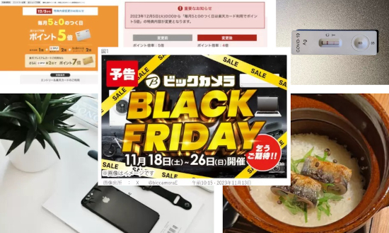 23年のブラックフライデーのセールが気になったためネットで調べだしたところ、ビックカメラは11月18日(土)~26日(日)とのこと。ノジマは11月17日(金)までだった。消費者にとっては物価高の折、お得に買い物できる機会が増えるのはありがたいこと。購入予定の商品がある方はこの機会を利用していただければと思う。(堀田経営コンサルタント事務所・堀田泰希)