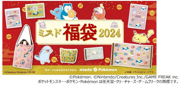 ミスタードーナツ(ミスド)は、ポケモンとのキャンペーンの一環としてミスド福袋オリジナルグッズがセットになった「ミスド福袋2024」を12月26日から数量限定で順次発売する。