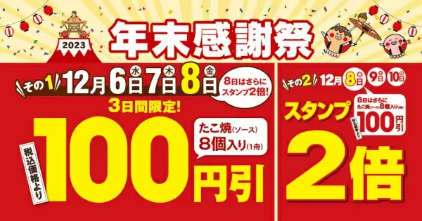 ホットランドは、たこ焼きチェーン「築地銀だこ」の全国店舗(一部店舗除く)で「年末感謝祭」を12月6日から12月10日まで開催している。