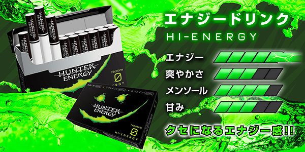 HUNTER ENERGYは、同社がこれまで培ってきた技術を生かして、ノンニコチン茶葉スティックに古来より食品として摂取されてきた、高麗人参、L-アルギニン、タウリン、ナイアシン、ナトリウム、カフェインといった健康維持に不可欠なビタミン、ミネラル、アミノ酸を配合したエナジー系スティック。ニコチンはもちろん、カロリー/糖質/脂質が含まれていない。