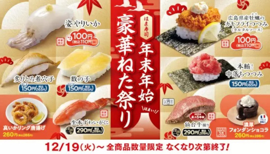 はま寿司は、全国の店舗で「はま寿司の年末年始豪華ねた祭り」を12月19日に開始した。