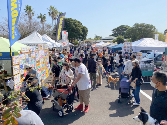 「伊豆高原わんわんマルシェ」は、第1回が2023年3月11~12日に富士箱根伊豆国立公園の城ヶ崎海岸(静岡県伊東市)にて開催され、2000名超の来場者と1200頭以上の来場犬が訪れる大盛況となった。