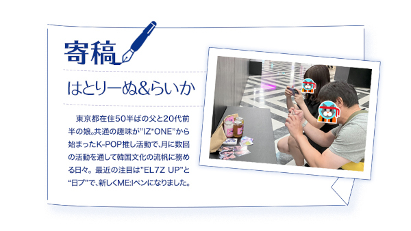 LIMELIGHTは23年2月14日にデビューしたアイドルグループです。デビュー時のコンセプトとして、今後メンバーを増やしていくという拡張型グループというものですが、現在は3人です。そして筆者が注目しているメンバーのミウは、あのKep1erを産んだオーディション番組「Girls Planet 999」に出演し、ミッション課題曲で高音に苦しみました。対抗グループで同じパートを見事に唄ったイェヨンにミウが納得していた姿を見て、筆者は今後もミウを追い続けようと決めました。その後、韓国の芸能プロダクション「143エンターテインメント」の所属を発表してLIMELIGHTとしてデビューしたのは嬉しいことです。つい最近ニューアルバムがリリースされましたが、毎回アカペラバージョンが収録されているのが一つの特徴になっていて、メンバーの声質を繊細に感じることができます。そしてLIMELIGHTの日本活動として、昨年末に東京タワー内にある「K-POP Plaza Tokyo」にポップアップショップがオープンしていましたので行ってきました。筆者はトレカに興味がなく、キーホルダーを買いましたが、メンバーランダムだったので、お目当てのミウを手にするのに5000円も使ってしまいました。
