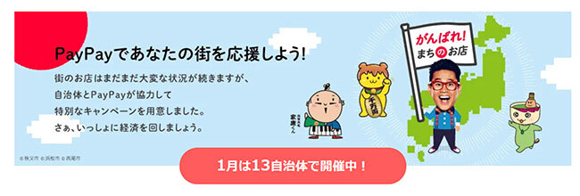 PayPayは、地方自治体と連携して実施している「あなたのまちを応援プロジェクト」として、茨城県日立市、神奈川県藤沢市(第3弾)など、新たに5つのキャンペーンを2月以降に実施する。