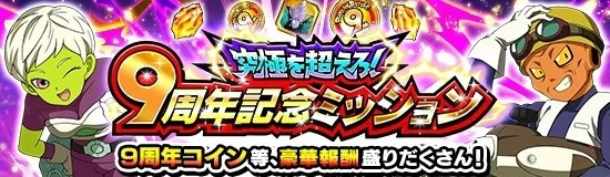 また、「究極を超えろ!9周年記念ミッション」や「9周年記念!7大超ミッション」も開催。これらのミッションをクリアすると、記念ガシャチケットや9周年コイン、龍石などの豪華報酬を獲得できる。