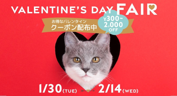 ペット用品の輸入・販売を行っているオーエフティー(OFT)は、1月30日(本日)から「OFT STORE」本店、楽天店、Yahoo店でバレンタインフェアを開始する。今回のフェアでは、割引率が最大35%オフとなり、購入金額に応じて300円~2000円分のその場で使えるクーポンを提供する。