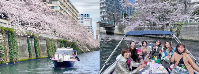 同企画は、東京でも随一の桜の名所として知られる目黒川の、約4kmにわたる両岸の桜並木を船上から眺めつつ、桜色のスパークリングワインと同企画のために用意されたオリジナルフードとともに楽しめる。