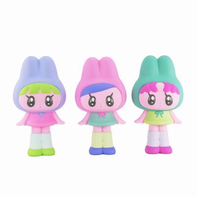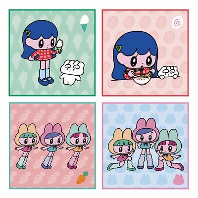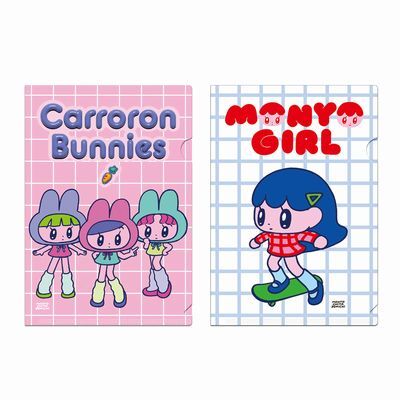 会場では、モニョチタポミチ氏のイラストを起用した「VINYL」オリジナルグッズを中心に、イベント限定アイテムである「ぎょうざちゃんぬいぐるみくじ」の販売も行われる。また、2024年1月に開催された個展にて初お披露目された新キャラクター「きゃろろんばにーず」のソフビ販売も実施する。