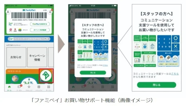 ファミペイのお買い物サポート機能をオンにすることで、顧客はストアスタッフに対してコミュニケーション支援ツールの提供を求める画面の提示が可能。ストアスタッフと素早くコミュニケーションがとれるようになる。なお、当事者の意見を聞く機会として、川崎市ろう者協会と買い物の利便性に関する情報交換の機会を設け、今後もサポートを必要とする顧客への取り組みを進めていく。