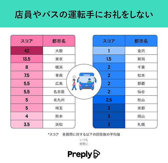 マナーが悪く思われる行動は「店員やバスの運転手にお礼をしない」