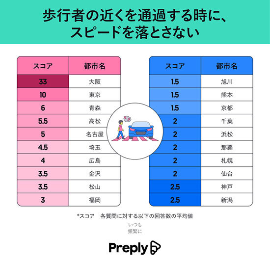 一方、マナーがよい都市としては、「千葉」「熊本」「札幌」が同率で首位となった。