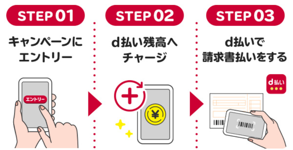 対象は、「d払い」の請求書払いが利用可能な請求書すべて。なお、「d払い」の請求書払いの支払い手段は「d払い残高」のみとなる。エントリーと支払いの順番は問わない。