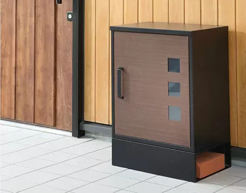 「K+BUILD 設置しやすい宅配ボックス」は、サイズが幅420.0×高さ620.0×奥行き320.0mmと、一般的な2Lのペットボトルケース(6本入り)が余裕で入るサイズ感の宅配ボックス。