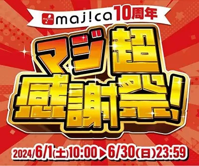 パン・パシフィック・インターナショナルホールディングス(PPIH)グループは、オリジナル電子マネー「majica(マジカ)」アプリの会員向けにキャンペーンを6月1日から30日まで実施する。majicaは2014年にサービスを開始し、今年で10周年を迎えると同時に会員数が1400万人を突破。これを記念し、「マジ超感謝祭」を開始する。