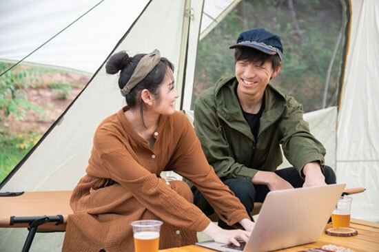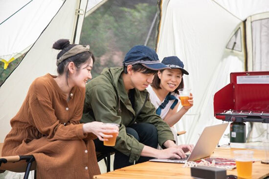 Wi-Fi完備のキャンプ場なら、キャンプ場でのテレワークが可能だ。さらに、仕事中に息抜きをすることも簡単。自然の中でリフレッシュできる環境は、オフィスとは違ったリラクゼーション効果をもたらしてくれる。