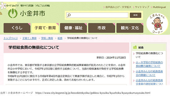 これにより、例えば小金井市や町田市など、これまで完全無償化に踏み切れていなかったすべての自治体が、2025年1月から無償化の実施を決めた。