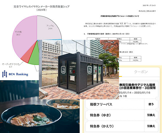 【今週のニュースダイジェスト】 1月24~30日の期間、「BCN+R」で注目を集めたのは、日銀の「政策金利引き上げ決定」について取り上げた記事だった。また、お得な冬の箱根旅行に関連した記事も読まれた。「完全ワイヤレスイヤホン」「密閉型喫煙所」「お食事処 なかさ」がテーマの記事も関心が高かった。
