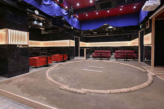 店内には、国技館や某相撲部屋の稽古場でも使用されている「荒木田土」と、大相撲東京場所などで使用されているものと同様の素材・形状となっている土俵だわらを使用した本物の土俵が設置され、力士(元・大相撲力士)たちによる迫力あるパフォーマンスショーが、毎日4ステージ繰り広げられる。英語で進行する相撲ショーでは、所作や取組、来店客の参加による力士とのチャレンジ相撲などが開催されるほか、オープニングでは芸者による舞が披露され、ショーの締め括りには土俵上で力士との記念撮影(グループごと)も楽しめる。