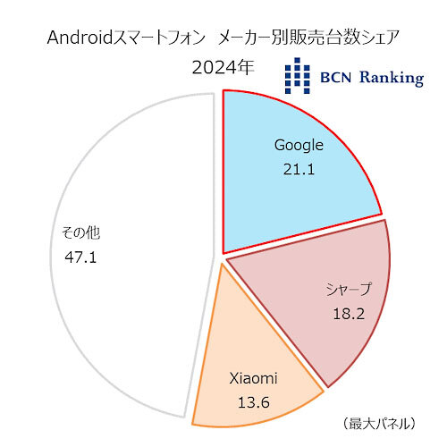25年1月20日に発表された「BCN AWARD 2025」から、本記事ではAndroidスマートフォン部門を取り上げ、上位3メーカーのシェアに貢献した機種(シリーズ)をみていく。