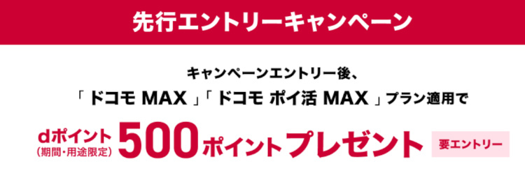 新料金プランの提供開始を記念して、「ドコモ MAX」「ドコモ ポイ活 MAX」先行エントリーキャンペーン、「ドコモポイ活」ポイント還元キャンペーンなど4つのキャンペーンを開催する。一部のキャンペーンは終了時期未定。