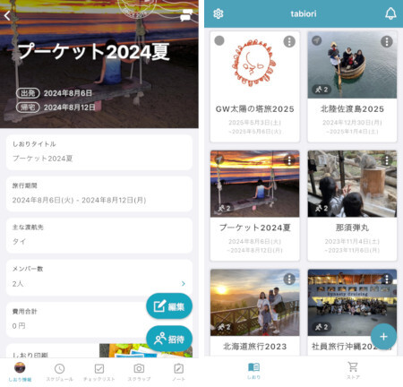 Tabioriは、旅のしおりを作成して同行者(我が家の場合は夫)と共有して、同時に編集できます。