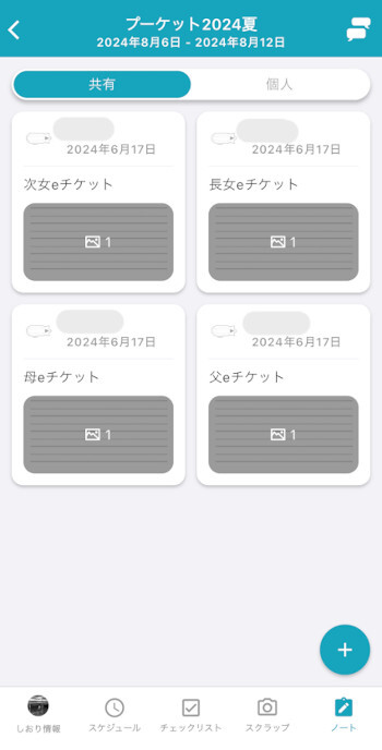 ノート機能では複数枚の画像を保存できます。現地で提示が必要な予約画面などをあらかじめスクリーンショットして保存しておくなどして、ノートに登録しておきます。
