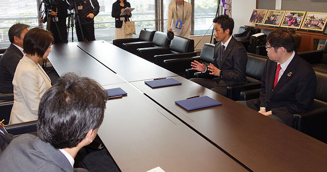 高際みゆき豊島区長、ソフマップの中阿地信介代表取締役社長