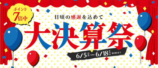 2025年の「大決算祭」では、おしゃれなショルダーバッグやワイヤレスキーボードなどを、超お値打ち価格で販売する「売り切れ御免!ぽっきりセール」が行われているほか、6月14日~18日の5日間限定となるポイントが10倍になる「期間限定!ポイント10倍」、18時~1時59分限定での全商品に使える7%オフクーポンの配布が行われる。