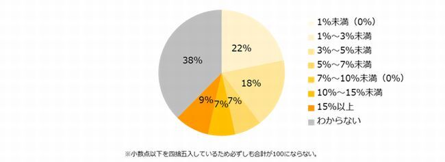 2025年の夏季賞与を前年と比較して「増額予定」と答えた企業に、増額の程度を尋ねたところ、「1~3%」(22%)が最多となった。