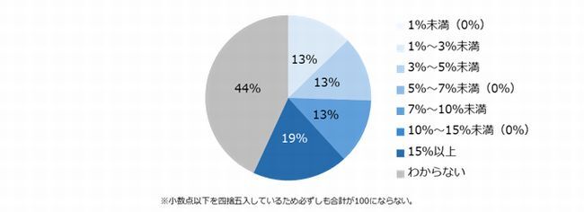 一方、夏季賞与を「減額予定」と答えた企業に、減額の程度を尋ねたところ、「15%以上」(19%)が最多となった。
