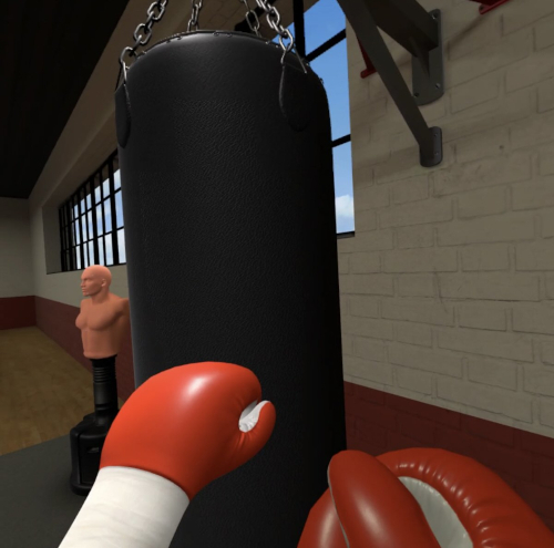 二つめはVRボクシングのアプリ「THRILL OF THE FIGHT!」です。本格的なボクシング体験ができる内容で、サンドバッグやダミー人形、パンチングボールを使った基礎トレーニングモードがあります。まぁ、サンドバッグを殴っても当然、抵抗はないのでなんちゃってではありますが、パンチングボールはタイミングよく叩かないと、ロッキーのように小気味よくボールが動いてくれないので、反射神経を鍛えるのにはよいかもしれません。