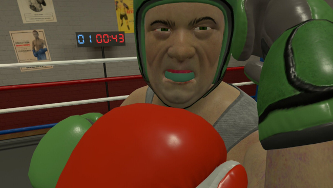 地味な練習に飽きたら、本格的な試合ができるモードに行きます。この試合モードが圧巻です。試合開始のゴングが鳴ると、さっきまでコーナー付近に立っていた対戦相手がいきなり目の前に現れてびびります。超接近戦での殴り合いが、相当にエキサイティングなのです。