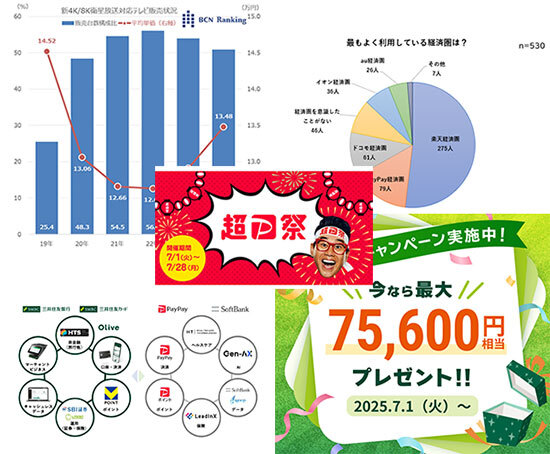 【今週のニュースダイジェスト】 6月27日~7月3日の期間、「BCN+R」で注目を集めたのは、超お得な「超PayPay祭」について取り上げた記事だった。PayPayに関連した記事では、三井住友カードとの連合も読者の興味を引いた。「経済圏」「Oliveのキャンペーン」「新4K/8K衛星放送」がテーマの記事も関心が高かった。