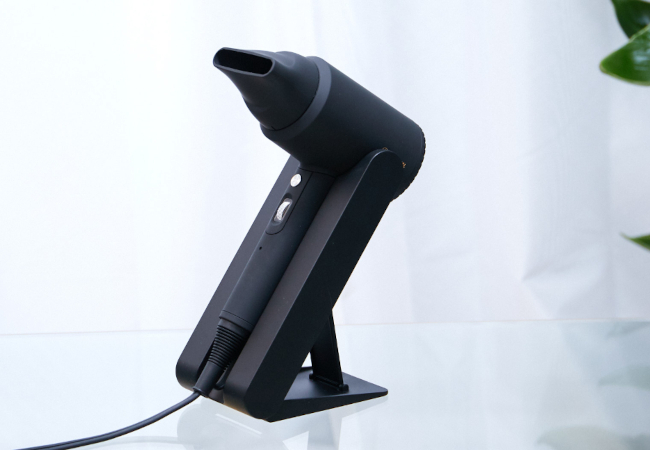 ハンズフリー置台により、ハンズフリーで髪を乾かしたり、サーキュレーターとして活用したりできるユニークなドライヤー。ドライヤーとしては、二つの遠赤外線で水分を振動させることで水分を保ったまま、すばやく髪を乾かせるのが魅力で、速乾性とうるおいを両立する。本体はダイヤルで風量調整を細かく行うことができ、自分好みにカスタマイズできる。