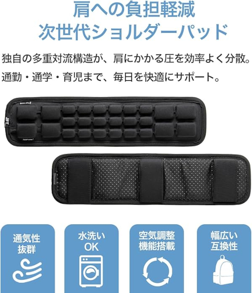 クッションタイプの商品では、肩にかかる負担を軽減してくれる「JFT 肩楽クッション」もセール対象だ。リュックや抱っこ紐に取り付けることで、肩にかかる圧力を最大77%分散する。