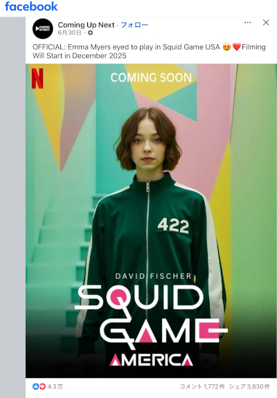 そんな中、SNSでNetflix「ウェンズデー」や“めるる”こと生見愛瑠さんが声優を務めることで話題になった「マインクラフト/ザ・ムービー」のエマ・マイヤーズの出演により、25年12月にNetflixで「イカゲームアメリカ」が配信を開始するという書き込みが拡散されました。では「イカゲームアメリカ版」は実際に制作されるのでしょうか?米メディアのフォーブスの記事では、「確率は高い」という趣旨で締めくくられています(https://www.forbes.com/sites/paultassi/2025/07/01/the-latest-update-on-squid-game-america-on-netflix/)。