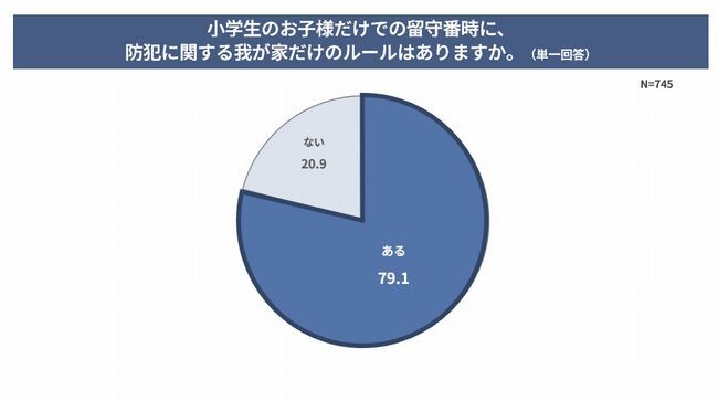小学生の子どもだけで留守番をさせる際に、それぞれの家における防犯に関するルールがあるかを尋ねたところ、「ある」という回答が79.1%を占めた。