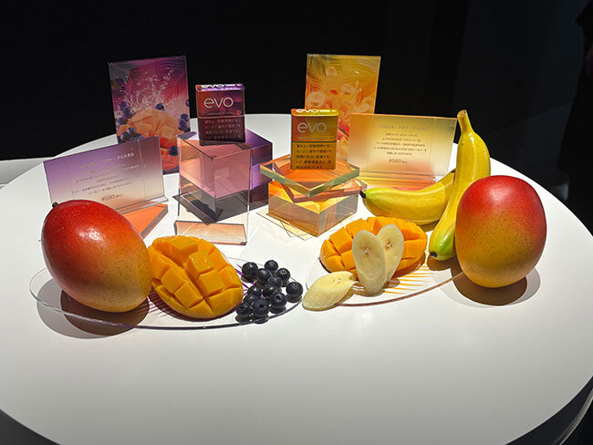 エボ・トロピカル・ベリー・クリスタルは、完熟マンゴーのフレーバーと、カプセルをつぶすことで広がる濃厚でみずみずしいベリーの甘さが特徴だ。一方、エボ・トロピカル・バナナ・クリスタルは、完熟マンゴーのフレーバーに加え、カプセルをつぶすことでクリーミーなバナナの甘さを楽しめる商品である。どちらのフレーバーも、カプセルを使用することで二つの果実の甘さが調和し、フルーツの豊かな体験を提供するという。