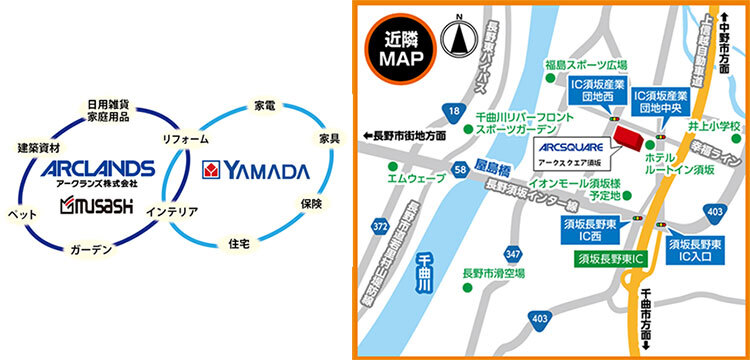 「アークスクエア須坂」のコンセプトと近隣マップ