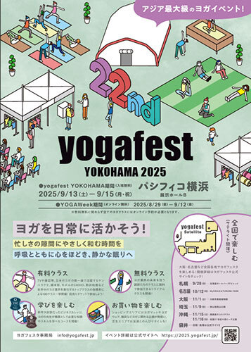 ヨガタウンは9月13~15日の期間、アジア最大級のヨガの祭典「第22回ヨガフェスタ横浜2025」を、パシフィコ横浜(神奈川県横浜市)にて開催する。