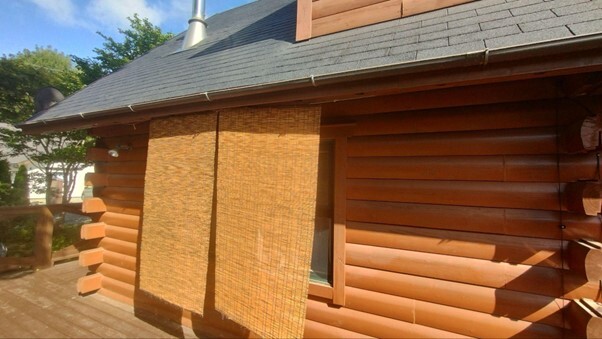 窓にはスダレ。原始的な対策ですがかなり効果があります。直射日光を防ぎつつ風を通すスダレ。外の景色も見えますし、これは本当に便利です。