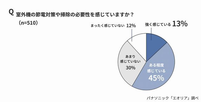 エアコンの室外機の節電対策や掃除の、必要性を感じているかを尋ねたところ、「必要性を感じている」とする回答は58%に達している。