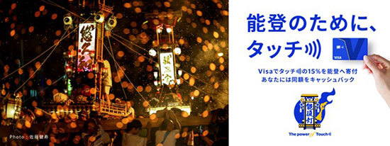 ビザ・ワールドワイドは、7月10日から9月30日まで、石川県内の一部の対象店舗で「Visa 能登のために、タッチ」キャンペーンを開催している。「Visa割」の仕組みを活用し、「Visa割」に登録した登録済みのVisaカードをタッチ決済で利用すると1カードにつき1000円を上限に利用額の15%をキャッシュバックするとともに、キャッシュバックした総額と同額をVisaが石川県に寄付する。
