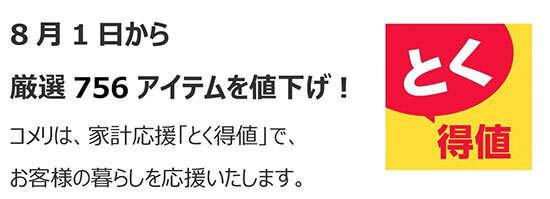 コメリ、家計応援「とく得値」として756アイテムを期間限定値下げ